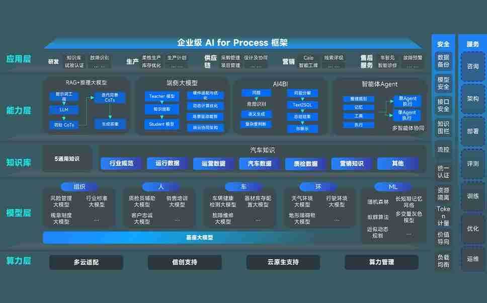 AG尊龙凯时问学智车解决方案是一套基于AI技术的汽车行业智能化系统,,,,覆盖从底层算力到顶层AI应用的全栈方案。。。方案由算力层、、、模型层和应用层组成:算力层,,,方案支持多种一体机配置,,,具备云端灵活部署、、多云适配以及动态优化计算资源的能力;模型层,,,AG尊龙凯时问学平台版提供了企业级AI应用一站式构建与管理平台,,支持基于后训练强化技术的汽车企业专属模型的训练、、、、评测和运营;应用层,,,AG尊龙凯时问学DeepSeek版提供包括超级员工、、智能招采、、、智能营销、、、智能客服、、、AI for BI等一系列解决方案,,可助力汽车行业实现数字化转型,,让管理更智能、、响应更敏捷。。